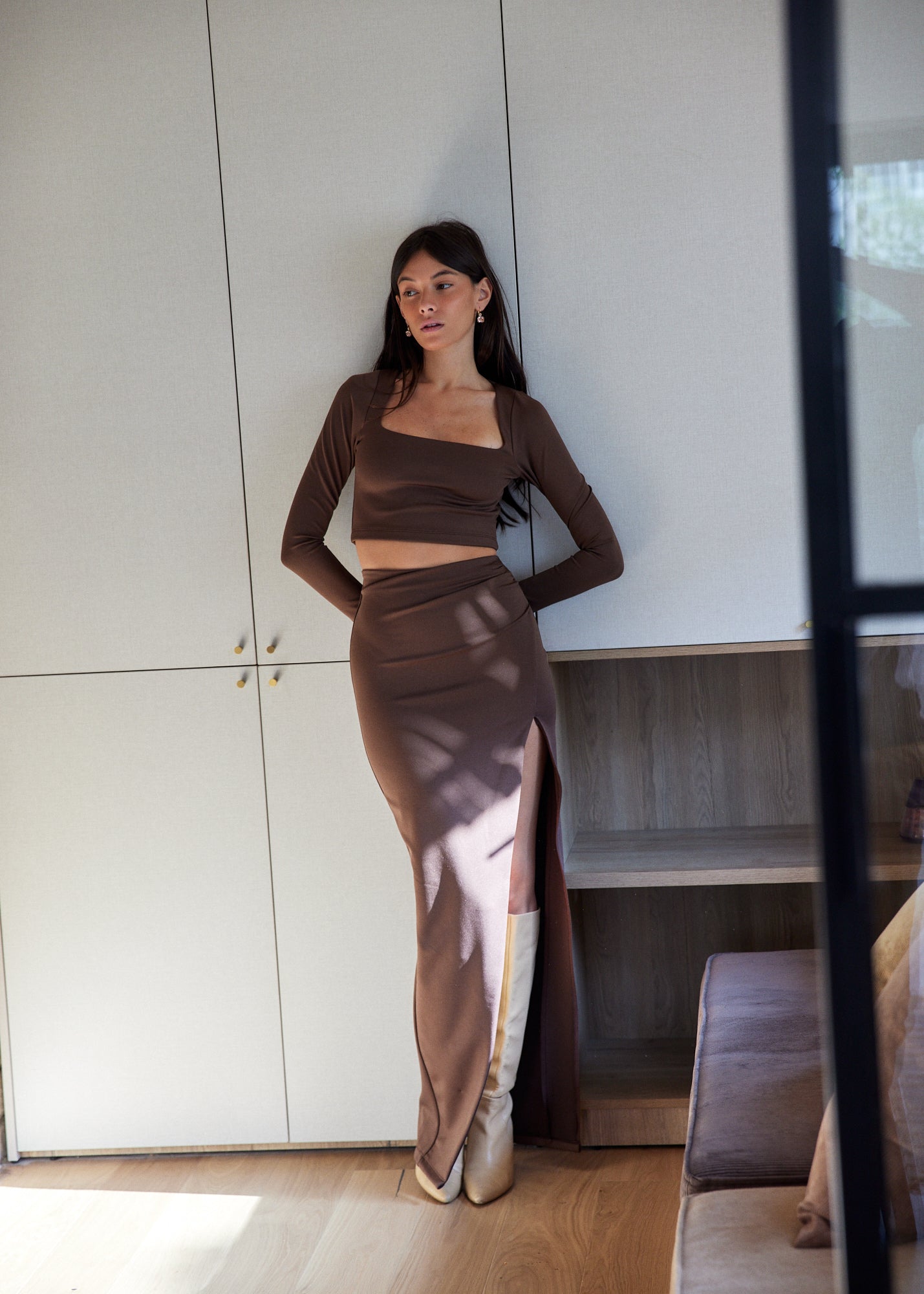 חצאית מקסי צמודה מבד לייקרה נמתח מחטב ומחמיא. דיטייל כיווצים בצד החצאית ושסע עמוק. מידה S מתאים למידות  34-36 מידה M מתאים למידות 38-40 מידה L מתאים למידות  42-44 מידות הדוגמנית: שרון היקף חזה- 83 ס”מ היקף מותן- 61 ס”מ היקף ירכיים- 92 ס”מ גובה 1.74, מידה 34– לובשת מידה S
