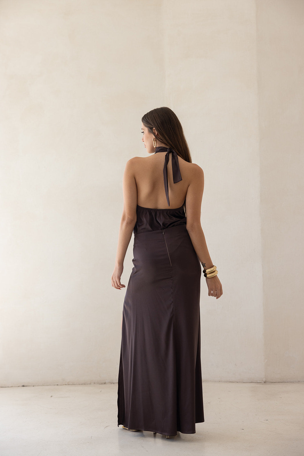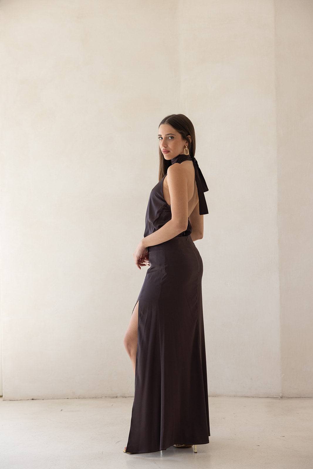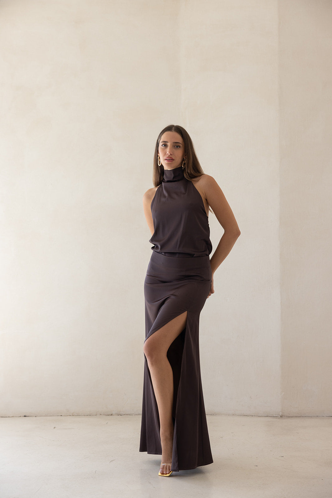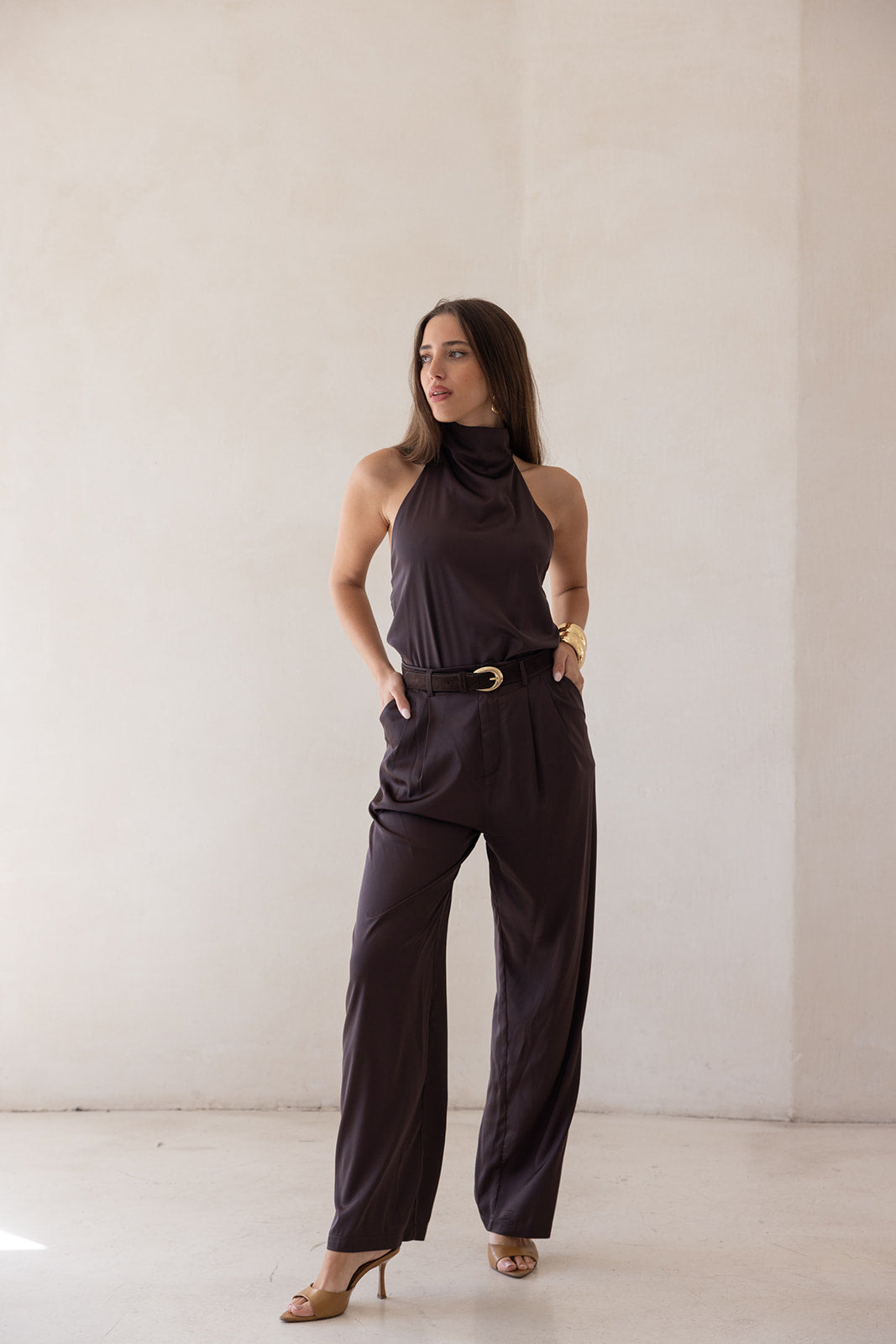 silky sand jumpsuit-DARK BROWN