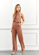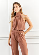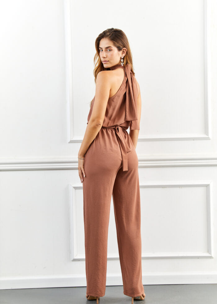 אוברול אלגנטי בגזרת קולר מחמיאה, עם מכנס ארוך .