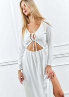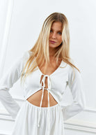 שמלת מקסי למראה בוהו שיק מושלם! קרופ טופ קשירה וחצאית עם שסע צידי לאורך השמלה, מבד אריג נשפך קליל ונעים. מידה S מתאים למידות  34-36 מידה M מתאים למידות 38-40 מידה L מתאים למידות  42-44 מידות הדוגמנית: גובה 1.70, מידה 34 – לובשת מידה S